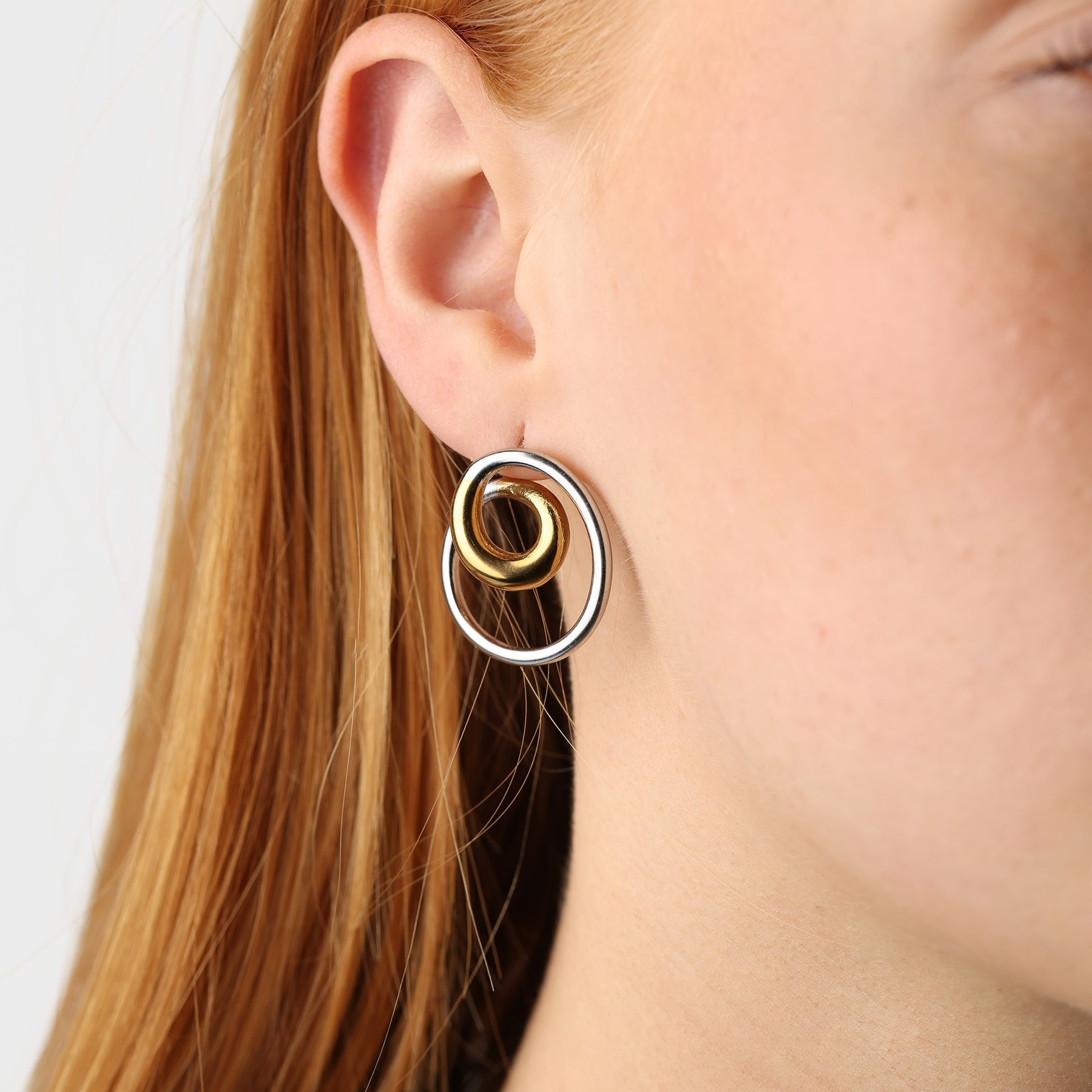 Kierremäiset nappikorvakorut vedenpitävästä ruostumattomasta teräksestä modernilla otteella.