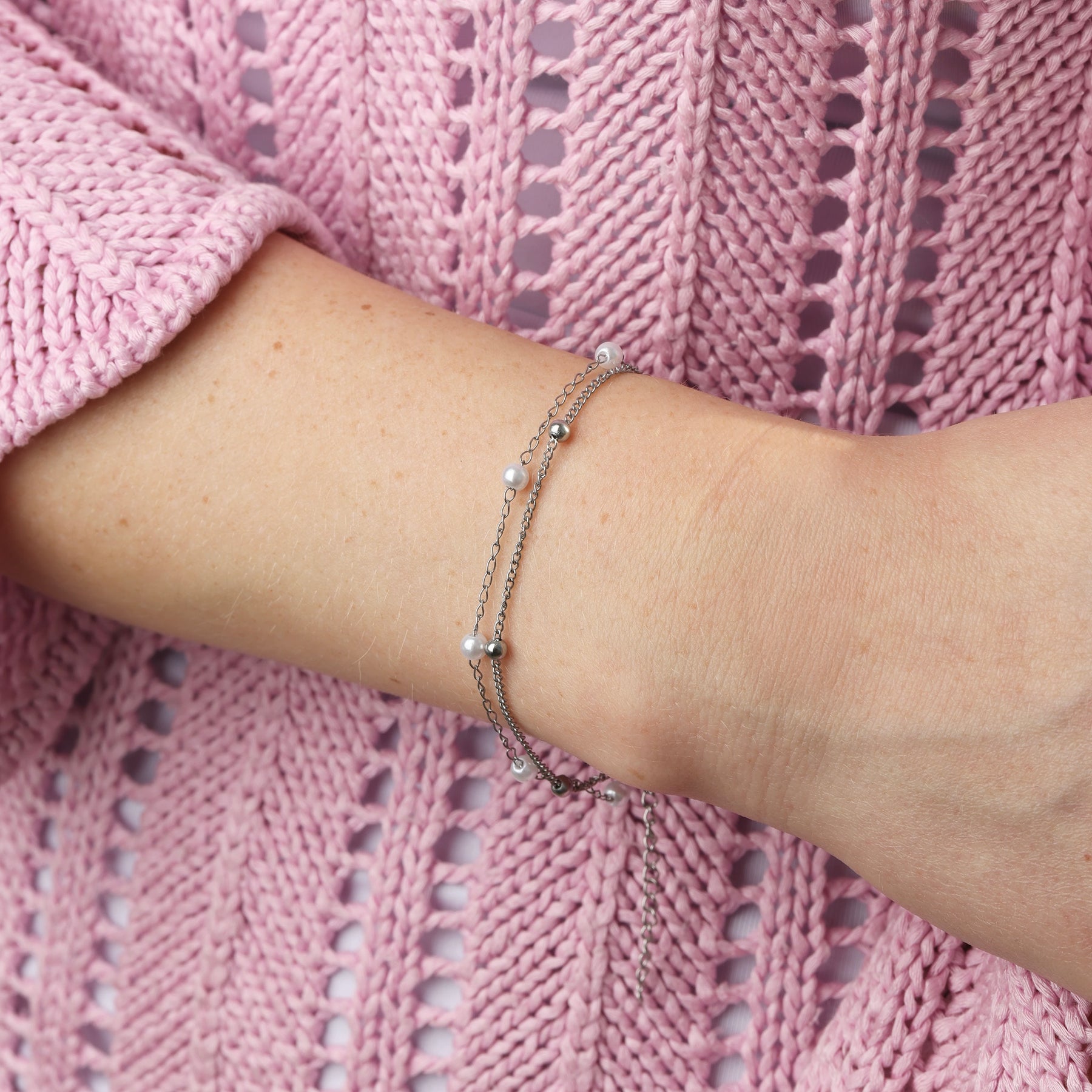 Kerrostettu ketjurannekoru waterproof ruostumattomasta teräksestä, rohkeaan tyyliin.