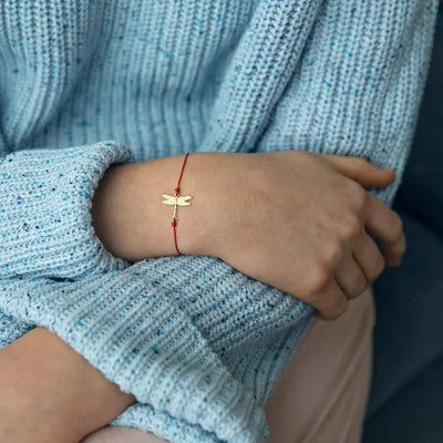 Silk Bracelet with Gold Dragonfly in Red